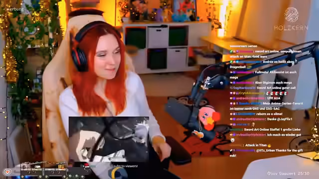 02:24:29Die Streamerin sucht nach neuen Anime-Empfehlungen und erwähnt, dass sie die zweite Staffel von Solo-Leveling schauen möchte. Diaries of the Apothecary wurde ihr ebenfalls empfohlen. Sie bevorzugt die japanische oder englische Synchronisation mit Untertiteln und kann deutsche Synchronisationen nicht leiden. Es wird über die Neuauflage von One Piece auf Netflix diskutiert, die ohne Filler und mit verbesserter Animation erscheinen soll. Die Streamerin plant, One Piece erst dann anzufangen, wenn die zusammengefasste Version auf Netflix verfügbar ist. Sie erwähnt, dass sie kürzlich einen anderen Anime angefangen hat, in dem der Protagonist gelevelt hat, kann sich aber nicht mehr an den Namen erinnern. Dragon Ball wird von der Streamerin nicht gemocht, was im Chat für Diskussionen sorgt. Es wird über Anime für Einsteiger diskutiert, wobei One Punch Man, Demon Slayer, Attack on Titan und Sword Art Online genannt werden.