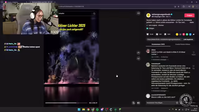 02:15:10Die Streamer teilen humorvolle Anekdoten aus ihrem Alltag, einschließlich seltsamer Essgewohnheiten und Erfahrungen mit Events wie den Kölner Lichtern. Die Unterhaltung ist locker und persönlich, mit selbstironischen Kommentaren über ihre Entscheidungen und Reaktionen auf verschiedene Situationen. Diese Abschnitte zeigen die menschliche Seite der Streamer jenseits ihres Contents.