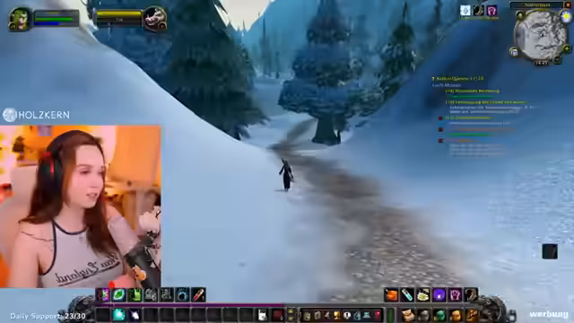 01:48:40Da sich kein Druiden-Mentor gemeldet hat, erklärt Feli den Chat zu ihren WoW-Mentoren und bittet explizit um Backseat-Gaming. Sie geht auf Basis der vorherigen Diskussionen in die Sauerkrowd-Gilden-Aktivitäten und wird Tipps zur Positionierung in Dungeons und zum Umgang mit der Bärenform einarbeiten. Die Session wird als interaktives Training gestaltet, bei dem die Zuschauer Feli aktiv during des Spielens anleiten.