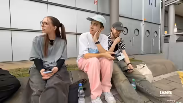 01:27:18Sie fahren zur Messe, die sie als interessant und voll beschreiben. Sie sehen verschiedene Stände und Personen, darunter auch bekannte Personen wie Banco, Pauline und Annika. Sie diskutieren über die Menschen auf der Messe und wie sie diese wahrnehmen. Auch wird über die Organisation der Messe gesprochen, die sie als gut ansehen.