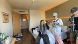 02:02:37Nach dem Messebesuch planen sie, Minigolfen zu gehen. Sie stellen jedoch fest, dass der Platz sehr voll ist und sie lange warten müssten, da viele Familien da sind. Sie diskutieren über alternative Aktivitäten wie Bowling, Bouldern oder Paintball und entscheiden sich schließlich, am nächsten Tag Bouldern zu gehen, da sie morgen früh auschecken müssen.