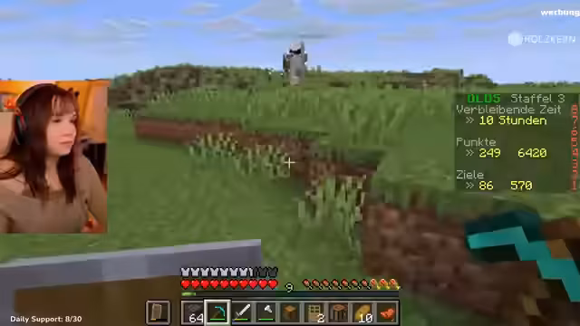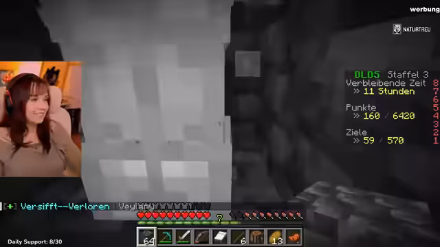 06:02:55Ein Kommentar im lobt die erfolgreiche Zusammenarbeit des Teams, wobei ein Zuschauer als Cheerleader mit Pompons bezeichnet wird. Kurz darauf ereignet sich ein Herzinfarkt-moment, als der Punktestand auf 111 steigt, was die Frage aufwirft, wie sich das Team im Ranking schlägt. Nachdem alle Aufgaben abgeschlossen sind, werden Sorgen um eine Creeper-Attacke von hinten geäußert, doch die Rüstung bietet Sicherheit. Die Punktezahl steigt auf 114, was das Team im Vergleich zu anderen voranbringt.