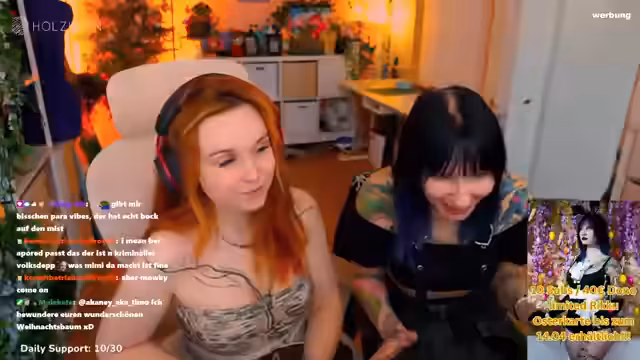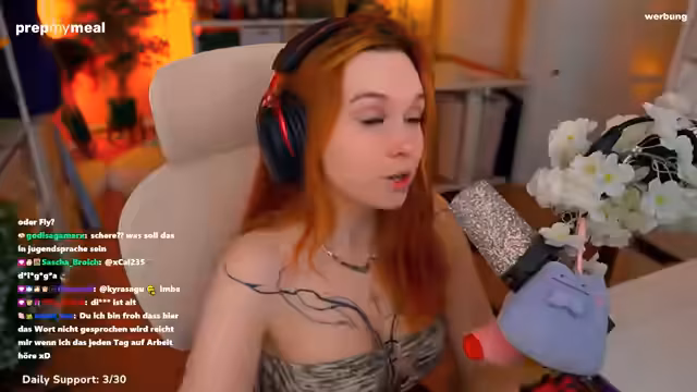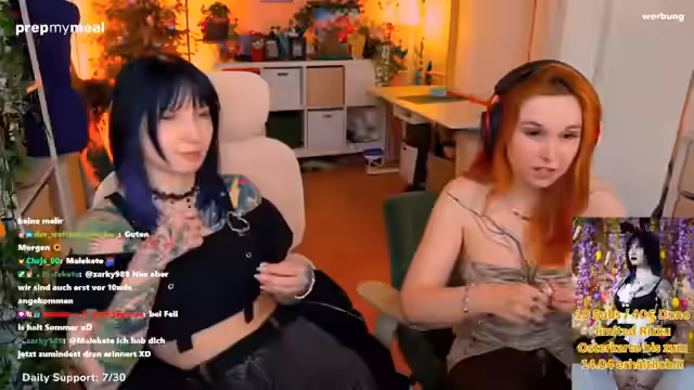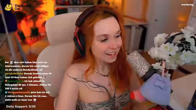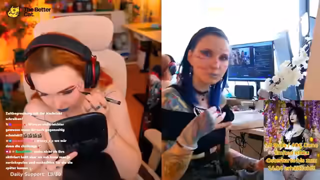 02:30:28Gegen 9028 laufen neben dem Make-up mehrere Nebenaktivitäten ab. Der Streamer berichtet von einer lustigen Anekdote über seine Katze Chonk, die ihm Energydrinks vom Tisch stiehlt. Währenddessen gibt es technische Schwierigkeiten mit den Mikrofonen, die oft krachen. Die Streamer diskutieren über die Herkunft ihrer mobilen Mikrofone von Hollyland. Die Unterhaltung springt von einem Thema zum anderen, von Katzen-Abenteuern über teure Öle bis hin zu einer spontanen Diskussion über den Horror-Auftrag, den ein Streamer erfüllen muss.