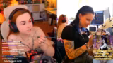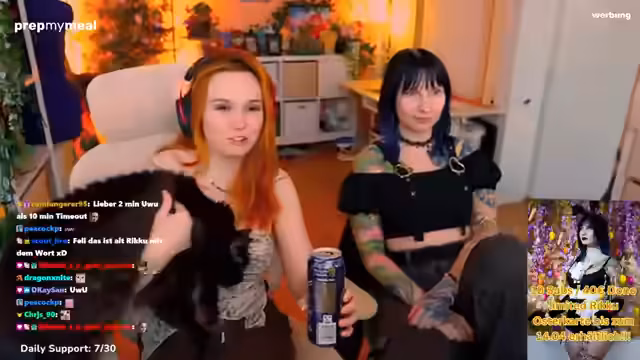 02:07:34Gegen 7654 beginnt die praktische Umsetzung der Make-up-Aktion. Die Streamer bemerken, dass sie einen zweiten Spiegel benötigen, damit beide gleichzeitig schminken und ihr Gesicht gut sichtbar ist. Nach kurzer Suche wird ein Wandspiegel abmontiert und neben der Hauptkamera platziert. Die Streamer räumen ihren Schminktisch auf und bereiten ihre Utensilien vor. Da die technische Umsetzung der zweiten Kamera nicht reibungslos verläuft, wird beschlossen, den Spiegel neben die Hauptkamera zu stellen und einen 50/50-Screen einzurichten, um beide Streamer gut sichtbar zu machen.