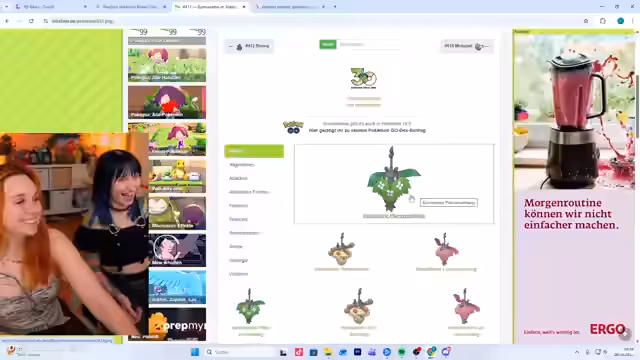 01:43:06Gegen 6186 wird das Konzept für das Pokémon-Make-up finalisiert. Statt eines einzigen Pokémon für das gesamte Make-up, werden nun separate Pokémon für die Augen, Lippen und Gesichtspartien gewürfelt. Für das Make-up von Riku werden Vesprit und Staraptor für die Augen, Quapuzzi und Luminéon für die Lippen sowie Slimer und Makar für das Gesicht gewählt. Da die benötigten Farben, insbesondere Rosatöne, nicht alle vorhanden sind, entscheiden sich die Streamer, die Palette zu erweitern und auch eine Perücke für das Projekt mitzubringen.