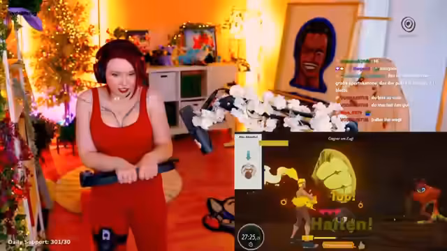 01:17:54Die Streamerin kündigt ein abwechslungsreiches Programm an, das von Ringfit über Cosplay bis hin zu Gaming reicht. Sie erklärt, dass sie die Teppiche im Hintergrund selbst im Stream herstellt und auch Cosplay-Projekte gemeinsam mit ihrer Community umsetzt. Neben Gaming, mit Ausnahme von Horrorspielen, bietet sie auch Gesangseinlagen an, die in letzter Zeit jedoch seltener geworden sind. Der Fokus liegt nun auf Ringfit, einem Sportspiel, das sie im Stream spielen wird. Sie betont die Vielfalt ihres Angebots, das darauf abzielt, unterschiedliche Interessen ihrer Zuschauer anzusprechen und eine interaktive Community zu fördern. Die Ankündigung des Ringfit-Streams dient als Übergang zu einer sportlicheren Aktivität, während sie gleichzeitig auf die kreativen und unterhaltsamen Elemente hinweist, die ihre Streams auszeichnen. Die Streamerin unterstreicht damit ihren Anspruch, ein breites Spektrum an Inhalten zu bieten und ihre Zuschauer aktiv in die Gestaltung des Streams einzubeziehen.
