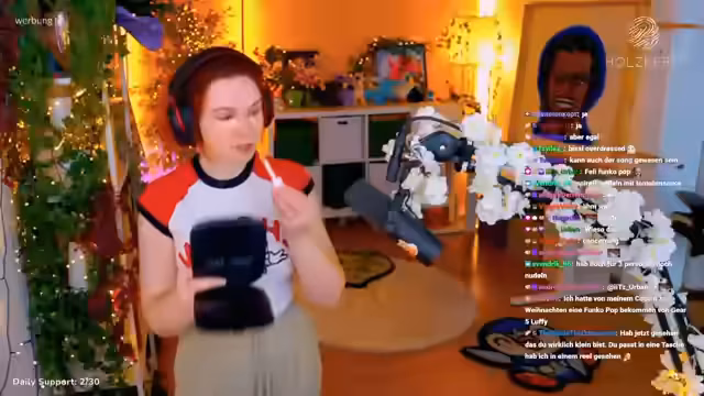00:08:48Feli startet den Stream und entschuldigt sich für die leise Musik. Sie begrüßt die Zuschauer und gibt an, noch nicht ganz wach zu sein. Es wird über verschiedene Themen gesprochen, darunter ein Shirt mit einem Toy Story-Alien, das Chunk, Felis Katze, ihr in die Nase gerammt hat. Zuschauer berichten von ihren Homeoffice-Tätigkeiten und Urlaubsplänen. Feli äußert Neid auf einen Welpen namens Silas, den sich ein Zuschauer geholt hat, und fragt nach der Aussprache des Namens. Sie erwähnt, dass sie keinen Muskelkater vom Vortag hat, da sie Switch Ringfit und Golf gespielt hat. Es wird über Urlaub zu Hause versus Reisen diskutiert, und Feli gibt an, dass sie zu Hause nicht abschalten könne.