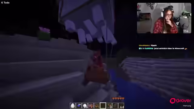 04:00:49Es wird versucht, einen Happy Ghast zu zähmen, wobei Schneebälle als mögliche Methode in den Raum geworfen werden. Die Streamerin sucht nach dem Sattel mit Brille, genannt Harness, um den Happy Ghast zu reiten. Nach einiger Suche wird die Harness gefunden und ausprobiert. Die Steuerung des Happy Ghast erweist sich als kompliziert, aber die Streamerin meistert sie schließlich. Es wird festgestellt, dass der Happy Ghast mehrere Sitzplätze hat und wie ein Auto gesteuert werden kann. Die Streamerin testet, ob man Fallschaden bekommt, wenn man vom Happy Ghast fällt, und stellt fest, dass er einen auffängt. Anschließend wird versucht, einen Dorfbewohner in ein Boot zu setzen und vom Happy Ghast ziehen zu lassen, was erfolgreich ist. Dieses neue Feature wird als verrückt und wie ein Minecraft-Uber beschrieben. Abschließend wird festgestellt, dass dies die wichtigsten Neuerungen des Updates waren.