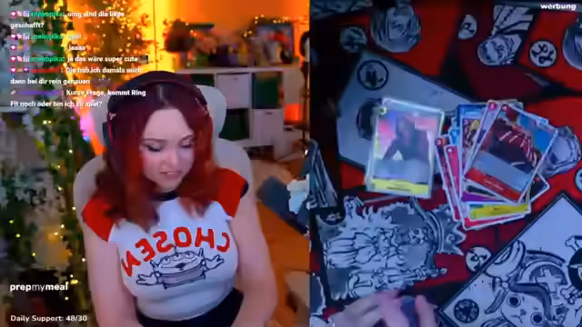 05:36:47Der Streamer bemerkt, dass eine Zuschauerin, Elli, beginnt, One Piece-Karten zu sammeln, nachdem sie durch einen anderen Zuschauer, Timo, inspiriert wurde. Er spielt mit der Rolle des 'bösen Teufelchens auf Ellies Schulter', das sie in diese Sammlersucht treibt. Diese dynamische Interaktion verdeutlicht die starke Beziehung zwischen Streamer und Community und den gegenseitigen Einfluss, der im Live-Stream entsteht.