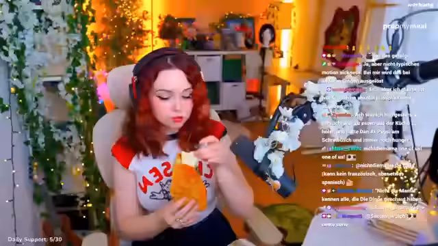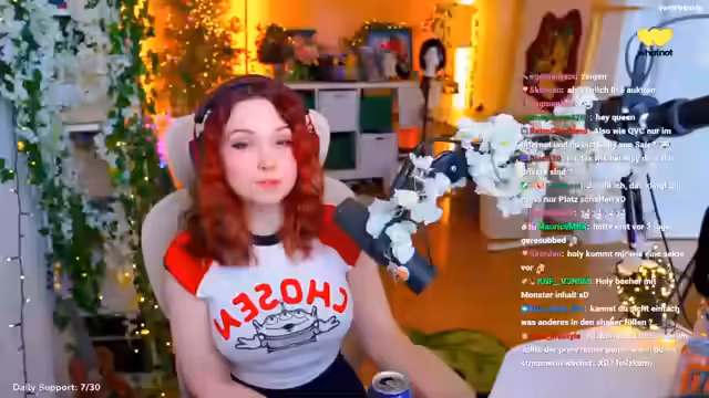 00:32:17Feli spricht darüber, dass sie keine Zeit zum Essen hatte und dass sie sich an ihre selbst gesetzten Stream-Zeiten halten will. Sie erwähnt, dass sie ihre Haare erst dunkler gefärbt hat, aber dass sie hellere Haare braucht. Sie findet die Locken super cute und empfiehlt den Wellenstab. Sie hätte gerne weiße Haare, aber ihre Haare würden dann wahrscheinlich sterben. Sie erzählt von ihren Erfahrungen mit Extensions und den hohen Kosten. Sie würde gerne wieder ein helleres Rot haben, weil sie sich mit ihren dunklen Haaren wie ein Mauerblümchen fühlt. Feli spricht über Schönheitsideale und die Ausgaben für Schönheitseingriffe wie Lippen aufspritzen und Botox. Sie hat selbst überlegt, sich Stirnfalten wegspritzen zu lassen und ihre Lippen größer machen zu lassen, es aber nicht gemacht. Sie findet es traurig, dass die Gesellschaft das Altern als etwas Schlechtes ansieht. Feli erwähnt, dass sie ein Community-Treffen im Mai in einem Brettspielecafé macht und dass sie gerne noch mehr Mädels dabei hätte.