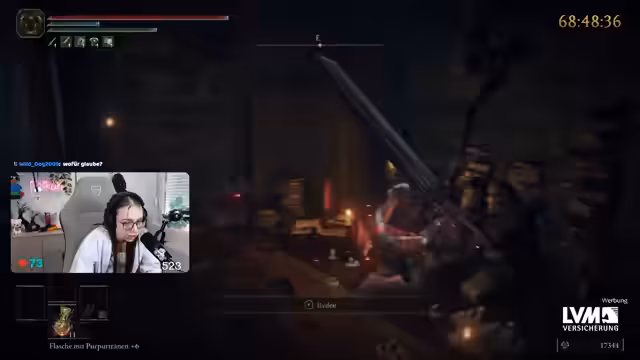 01:01:32Während des Elden Ring Streams kämpft der Streamer gegen verschiedene Gegner und sucht nach Aufzügen, um neue Gebiete zu erreichen. Er hat Schwierigkeiten, die richtige Route zu finden und verliert dabei oft das Leben. Streamer gibt an, dass er nicht bereit für Malenia ist und erst bestimmte Medaillons sammeln muss, um dorthin zu gelangen. Auch spricht er über die Notwendigkeit, seine Waffe zu upgraden und mehr Runen zu sammeln, um stärker zu werden.