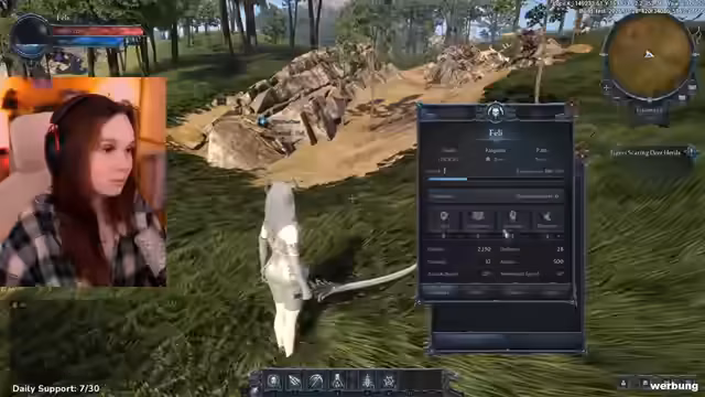 03:29:56Nachdem der Streamer den Schwertangriffs-Bug temporär durch ein Alt-Tab behebt, gelingt es ihm, mehrere Tiger zu besiegen. Allerdings droppen diese die für die Quest benötigten Fänge nicht. Die UI zeigt ebenfalls wieder Fehler, da der Questlog nicht mehr aktualisiert wird. Dennoch erkundet er das Inventar, das Fähigkeiten-System und das Emote-Menü, was Einblicke in die geplanten Spielmechaniken trotz des unvollkommenen Zustands der Pre-Alpha bietet.