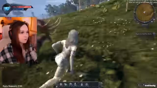 04:14:09Der Streamer setzt die Jagd auf die restlichen Tierarten fort, die in der Quest verlangt werden, darunter Grey Stags, Black Goats und Reddish-Brown Deer. Aufgrund des eingeschränkten Inventars an Heiltränken gestaltet sich dies als schwierig und riskant. Er muss seinen Charakter oft heilen und weicht daher oftmalig von den Mobs aus. Nach und nach tötet er alle benötigten Tiere und der Fortschrittsbalken füll sich vollständig auf.