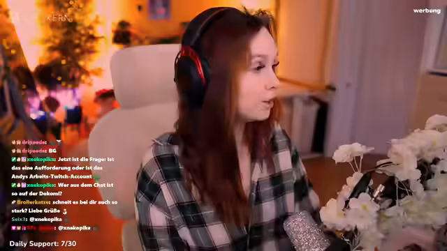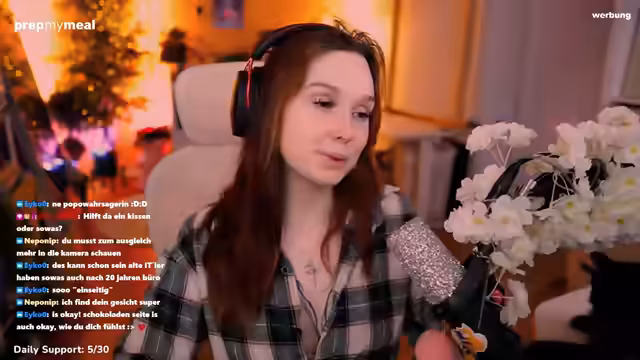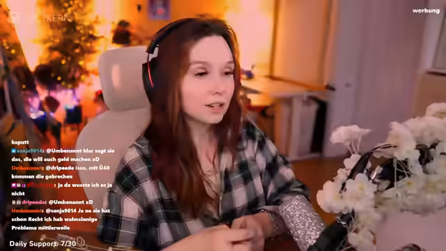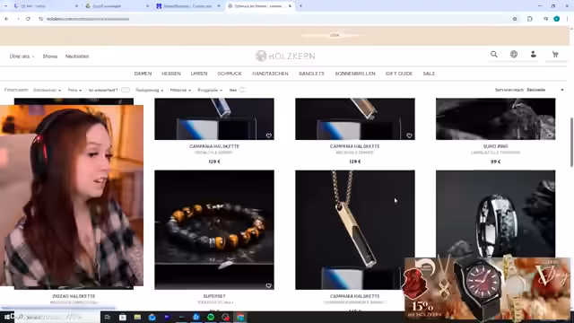 01:40:12Die Streamerin wendet sich dem Thema Kundenservice zu und mahnt zur Höflichkeit gegenüber Mitarbeitern, da deren persönliche Frustration nicht am Personal ausgelassen werden sollte. Danach spricht sie über anhaltende Darmprobleme, die sie mit Supplementen und der Planung einer möglichen Therie bekämpfen will. Sie erwähnt ihre Pläne für einen intensiveren Streaming-Partner-Grind im Februar. Anschließend wirbt sie intensiv für den Schmuckhersteller Holzkern, ihre Partnerfirma, und empfiehlt deren Produkte als Geschenkidee für Valentinstag, wobei sie ihren Rabattcode anpreist und die Einzigartigkeit und Qualität der Produkte hervorhebt.
