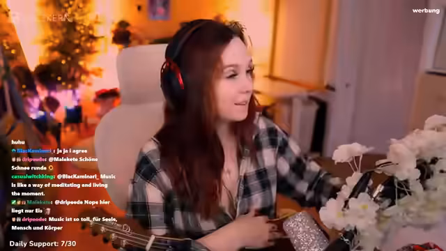 02:13:37Nach einer kurzen Pause widmet sich der Stream der Ukulele, die er zuvor stimmt. Nachdem er seinen Lieblingssong Mama Mia von ABBA auf der Ukulele beigebracht hat, spielt er einige Lieder für die Community. Darunter Wicked Game und Toss a Coin to Your Witcher, wobei er spontan improvisiert und seine Freude an der musikalischen Ausdrucksform teilt. Die Musik dient als entspannte Einlage vor dem nächsten Programmpunkt.