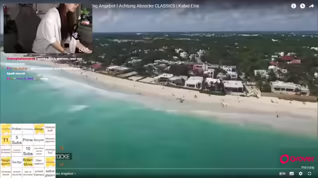04:39:56Der Streamer vergleicht die 400 Dollar für das Schnorcheln mit den Kosten für einen Urlaub mit Freunden in Barcelona. Er kritisiert, dass Peter Giesel keine Klapphülle für sein Handy hat und dass seine Hülle so kaputt ist. Er zeigt den Blick aus dem Aquarium und sagt, dass es viel cooler aussieht als alles, was er eben gesehen hat. Er betont, dass der Eintritt ab 17 Uhr gratis ist und gibt dies als seinen ultimativen Tipp für Freunde der Unterwasserwelt. Er bedauert, dass er kein Bingo geschafft hat. Er fragt sich, was auf der Webseite stand und was dazu gehört hat. Er vermisst die Bahamas-Schweine. Er kritisiert, dass Achtung, Abzocker normalerweise solche Sachen nicht hinterfragt und dass sie in der Vergangenheit problematische Tierhaltungen nur als 'süß' bezeichnet haben. Er startet eine neue Wette, ob es in dieser Folge ein Bingi geben wird. Er betont, dass er mindestens 6 Stunden live sein möchte und kritisiert, dass die Zuschauer nicht genug Channel-Points einsetzen.
