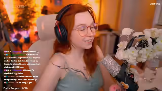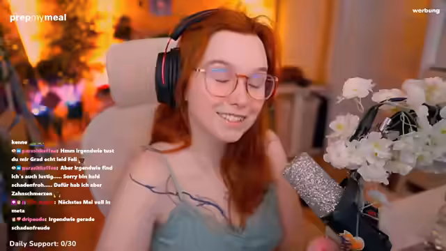 00:13:01Da keine Energy-Getränke vorhanden sind, testet die Streamer gemeinsam mit dem Chat Koffeinkapseln der Marke MyBags. Diese enthalten natürliche Koffeine aus Guarana und grünem Tee. Sie erklärt, dass sie zuvor schon andere Produkte der Marke für ihren Darm probiert hat und eine positive Erfahrung damit gemacht hatte, auch wenn sie manchmal vergisst, die Einnahme regelmäßig fortzusetzen.