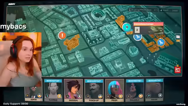 03:29:53Das Team erhält fortlaufend schwierige Einsätze, die schnelle Entscheidungen und strategisches Vorgehen erfordern, wie das Ergreifen von Dieben oder das Löschen eines Feuers. Die Handlungen der Helden führen oft zu komischen oder unvorhergesehenen Ergebnissen. Entscheidungen haben spürbare Konsequenzen für die Charaktere; so wird beispielsweise ein 'Waterboy' und 'Hausmeister' eingestellt, nachdem der Streamer unfreundlich zu ihm war, was bei ihm zu Ekel führte. Eine erfolgreiche Mission endet mit dem Auftauchen eines neuen, mysteriösen Charakters namens 'Beef'.