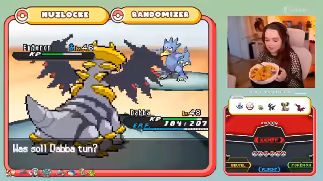 04:37:41Die Streamerin konzentriert sich darauf, ihre Pokémon auf das Level Cap zu bringen und ihnen neue Attacken beizubringen. Einige Pokémon wie Riku lernen jedoch als Ersatz nicht so nützliche Attacken wie Schutztausch oder Bärenkräfte, was zu Frustration führt. Gleichzeitig wird das Item für das legendäre Pokémon Giratina vergeben und der Fokus liegt darauf, das Team für den nächsten Arenaleiter, Parzival, strategisch aufzustellen.