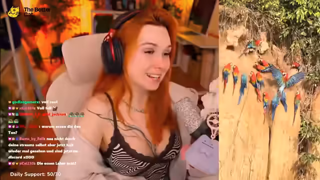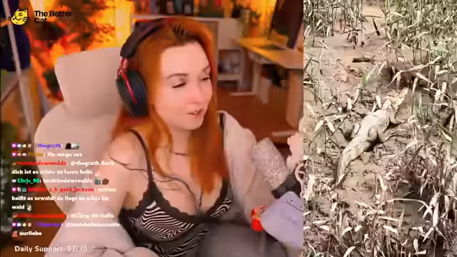 01:29:19Eine der aufregendsten Touren begann um 3:30 Uhr morgens. Bei absoluter Dunkelheit wurde mit dem Boot ein Fluss befahren. Ein Guide musste ständig mit einem Scheinwerfer den Weg frei leuchten, da der Fluss von großen Steinen übersät war und eine starke Strömung aufwies. Die Streamerin äußerte ihre große Angst vor einem möglichen Kentern des Bootes in der dunkelsten Stunde des Urwalds, da die Überlebenschancen in diesem Fall als äußerst gering eingeschätzt wurden.