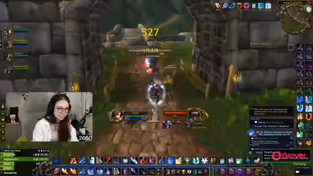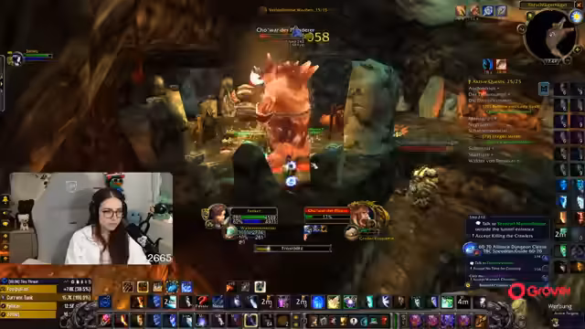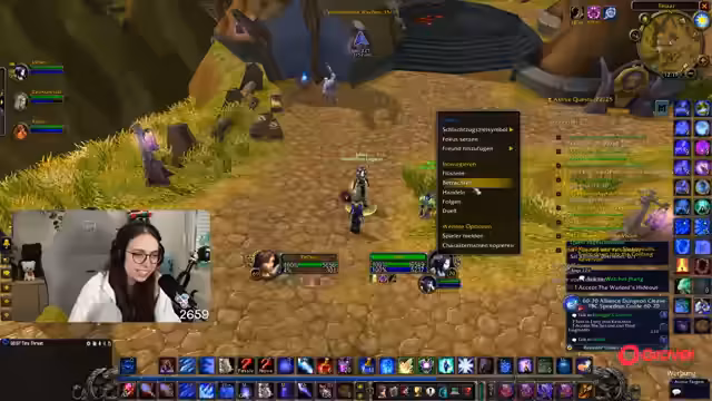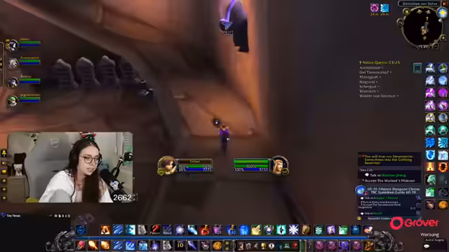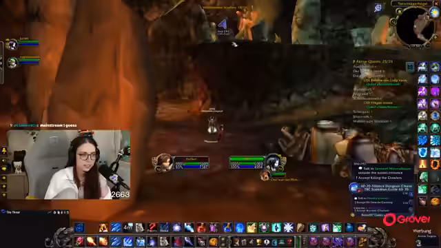 06:00:43Die Streamerin befindet sich auf der Suche nach Corki auf dem Totschlägerhügel, um die Quest 'Corkys Lösegeld' abzuschließen. Nach anfänglicher Verwirrung über die richtige Höhle, in der sich Corki befindet, findet sie mit Hilfe des Chats den richtigen Weg. Es kommt zu einem Kampf mit mehreren Gegnern, die die Quest erschweren. Schließlich wird Corki befreit und die Quest erfolgreich abgeschlossen, was den Questlog freimacht und den Weg für weitere Aufgaben ebnet.