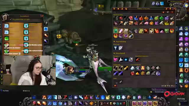 02:55:03Die Streamerin konzentriert sich auf das Erledigen von Quests für TBC, insbesondere das Aufleveln und das Abschließen der benötigten Schritte. Es gibt Diskussionen über den Level-Fortschritt, die Notwendigkeit, gemeinsam zu boosten, und die Planung für den nächsten Sonntag, als der Level-Zielstand erreicht sein soll.