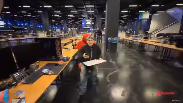 05:08:51Nachdem die Teilnehmer die Challenge erfolgreich gemeistert haben, wird die Hektik und Anstrengung der Aktion noch einmal thematisiert. Die Gruppe erkundet anschließend weiter die Gamescom LAN, vorbei an verschiedenen Bereichen wie einem Kartenspieltournament oder einem Smash-Turnier, und interagiert mit den Besuchern und anderen Streamern.
