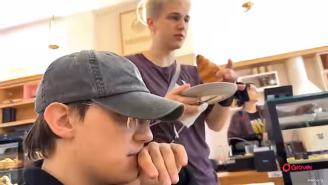 00:34:52Nachdem sich die Gruppe neu formiert hat und Simon wieder im Team ist, wird der ursprüngliche Treffpunkt als ungeeignet befunden. Die Gruppe beschließt, die Zeit vor dem Bouldern mit einem gemeinsamen Frühstück in einem türkischen Viertel zu verbringen. Es entwickeln sich Gespräche über kulinarische Vorlieben, insbesondere die Picky-Eater-Problematik einiger Teammitglieder. Der Fokus verlagert sich auf die Gemeinschaft und die Vorfreude auf die kommende Aktivität im Stuntwerk.