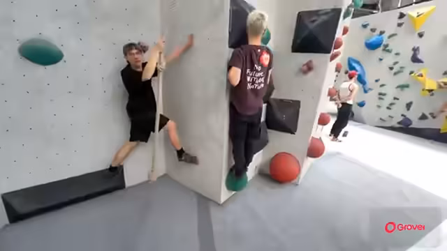 03:51:39Nach einer Pause wird das Bouldern wieder aufgenommen. Hier geht es um praktische Aspekte wie den richtigen Griff, das richtige Halten und den Fußwechsel an der Wand. Ein Teilnehmer gibt dem anderen Ratschläge, wie er eine bestimmte Route effizienter klettern kann und wo er seinen Körper abstützen soll. Die körperliche Anstrengung ist deutlich zu spüren, insbesondere im Bereich der Arme und Finger.