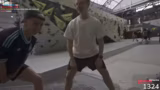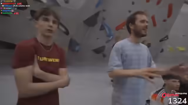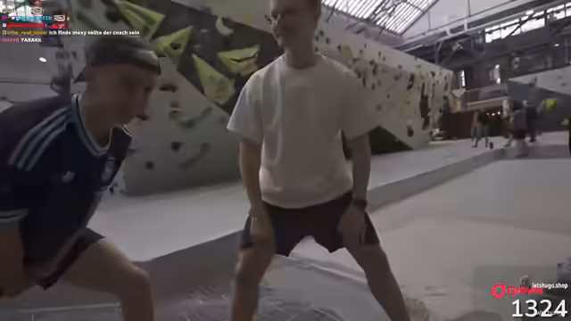 00:09:47Vor dem eigentlichen Training berichtet der Streamer über einen ereignisreichen Vortag. Er war mit einem Freund im Hotel, ist mit E-Bike, E-Scooter und S-Bahn zum Dom gefahren, dabei ist es zu Begegnungen mit Fans gekommen. Nach der Anreise und dem Aufstellen der Ausrüstung beginnt die wichtigste Phase: das gemeinsame Aufwärmen. Das Team führt intensive Übungen durch, um die Gelenke zu mobilisieren und den Körper auf die körperlich anspruchsvollen Übungen vorzubereiten. Der Streamer erwähnt dabei seine eigene Kondition, die sich durch Snowboard-Verletzungen in Grenzen hält.