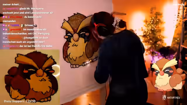 00:19:06Der Stream ist stark von der Interaktion mit den Chatmitgliedern geprägt. Es werden Fragen zu Essen in Frankfurt, insbesondere zu veganen Hotpot-Alternativen, beantwortet. Feli empfiehlt hierfür das Café Bour und teilt persönliche Vorlieben für Frühstücksgerichte. Die User äußern sich auch über ihre Lieblings-Pokémon für das kommende Artwork. Die gesamte Stimmung ist entspannt und auf die Community ausgerichtet.