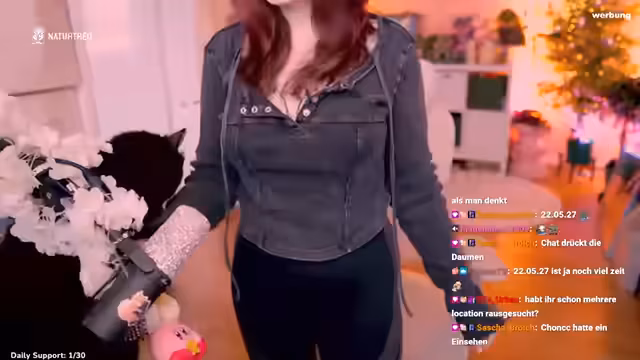 00:33:11Feli katapultiert die Aufmerksamkeit auf ihr Haustier, die Katze Chong. Sie beschreibt ihn als einen sehr kuscheligen und genießenden Kater, der oft auf ihrem Schoß sitzt und dabei ihre Beine einschlafen lässt. Der Chat ist begeistert von Chong und es entsteht eine humorvolle Diskussion darüber, wie viel Geld man für das Ausleihen oder Klonen der Katze aufwenden müsste, was zeigt, wie sehr Chong das Publikum verzaubert hat.