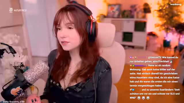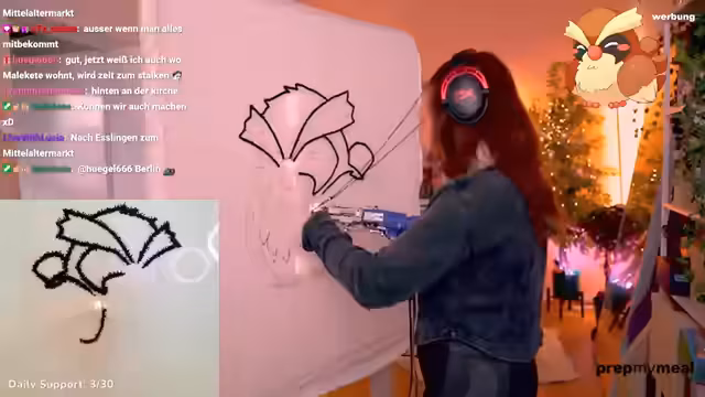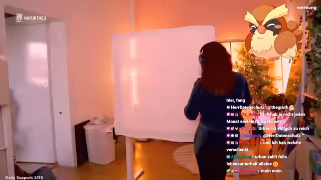01:02:59Die Streamerin bereitet sich auf die Herstellung eines neuen Teppichs vor und räumt dafür ihren Arbeitsbereich auf. Sie erwähnt, dass es lange her ist, dass sie einen Teppich am Spiegel gemacht hat, und zeigt ihre neuen Kopfhörer sowie eine Ersatz-Tastatur. Währenddessen erinnert sie sich an ihre Kindheit und FKK-Erlebnisse, was zu einer Diskussion über Badezuber auf Mittelaltermärkten führt. Sie äußert Bedenken, dass Frauen auf solchen Märkten angestarrt werden könnten, und bevorzugt Thermen, besonders im Winter, um der Kälte zu entgehen. Die Vorbereitungen für den Teppich, der ein Taubsi-Motiv für Urban haben wird, schreiten voran. Sie erklärt, dass sie das System des 'Top-Sub-Gifter des Monats' nicht mehr verfolgt, da Urban ohnehin immer die Teppiche bekommt und niemand an seine Spendenbereitschaft herankommt. Sie drückt ihre Dankbarkeit für die finanzielle und mentale Unterstützung ihrer Community aus, die es ihr ermöglicht, weiterhin Vollzeit zu streamen, besonders in Monaten mit weniger Kooperationen.