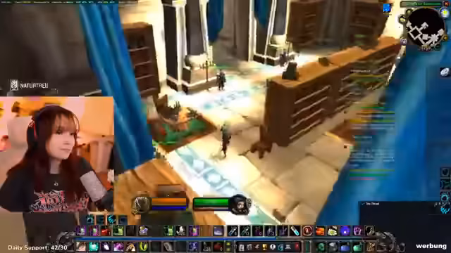 06:00:28Ein entscheidender Moment im Stream ist der Erhalt der Reisegestalt für den Druiden. Dies wird als glorreicher und liebenswerter Moment gefeiert. Es werden die Vor- und Nachteile der Gestalt diskutiert, wie z.B. das schnelle Reisen, aber auch die eingeschränkten Angriffsmöglichkeiten. Nebenbei werden Tränke und Zauber wie Gelassenheit als Heil-AOE-Möglichkeit analysiert.