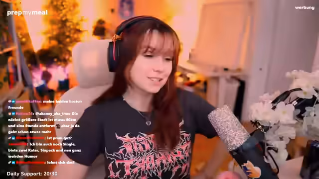 02:30:58Die Streamerin bewirbt das Kochboxen-Unternehmen Prep My Meal sehr detailliert. Sie erklärt transparent, dass die Portionen im Preis pro Mahlzeit teurer sind als selbstgekochtes Essen, aber der Hauptvorteil die massive Zeitersparnis sei, was für sie als Person, die Kochen nicht mag, entscheidend sei. Sie gibt einen 5%-Rabattcode weiter und warnt davor, das Abo bei der erstmaligen Bestellung nicht zu aktivieren, um es zuerst auszuprobieren.