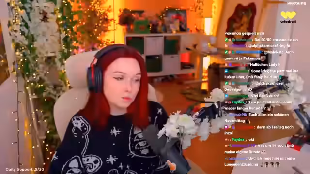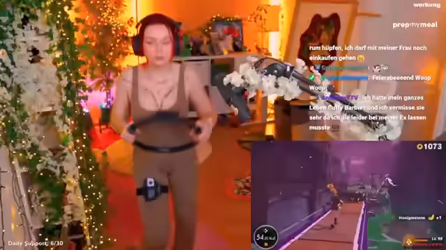 01:50:51Der Fokus bleibt auf dem Fortschritt im Spiel Ring Fit Adventure, wobei Level-ups und neue Übungen gefeiert werden. Parallel dazu spricht die Streamerin über zukünftige Pläne. Sie kündigt einen Spenden-Stream im April für den Deutschen Tierschutzbund an und erzählt von ihrer persönlichen Spendenroutine, einschließlich eines monatlichen Spendenabos für eine Katzenpatenschaft.
