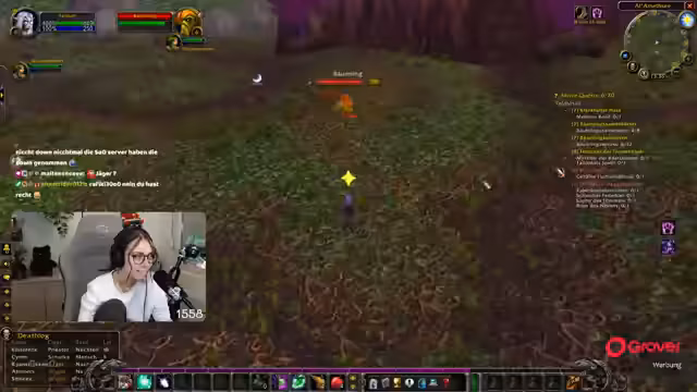 02:30:28Der Stream erklärt @NICISTEMMLER das Questsystem: Quests werden durch Rechtsklick angenommen, Ziele auf der Map als Schwerter (Kämpfe), Beutel (Gegenstände) oder Zahnräder (Ingenieursobjekte) markiert. Gruppenbildung wird für geteiltes Looten empfohlen. Fähigkeiten werden demonstriert: blaue Mana-Leiste unter dem Leben, Nutzung von Tasten 2 und 3 für Angriffe/Heilung. Distanz ist entscheidend, da Nahkampf mehr Schaden verursacht.