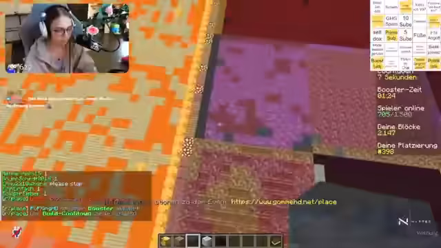 04:39:52Die Begeisterung über die Geschwindigkeit, mit der die Blume auf r/place entsteht, wird ausgedrückt, wobei die Gänsehaut-Momente und die Dominanz hervorgehoben werden. Technische Aspekte der Mod Lightmatica werden diskutiert, insbesondere die Farbkorrektur. Es wird festgestellt, dass die Blume bereits fertiggestellt ist, aber Pixelfehler durch die verwendete AI vorhanden sind. Es wird dazu aufgerufen, andere Bereiche nicht zu überbauen und sich an die vereinbarten Pläne zu halten. Ein Nutzer namens Roxa wird ermahnt, sich zu benehmen und keine unerwünschten Blöcke zu platzieren. Während der Bauarbeiten werden Witze gemacht und persönliche Anekdoten erzählt. Es wird überlegt, alle Teilnehmer in einer Reihe aufzustellen und gleichzeitig Blöcke setzen zu lassen, um den Baufortschritt zu beschleunigen. Der Streamer Trimac wird im Chat entdeckt und begrüßt. Es wird über die technischen Herausforderungen mit Spotify gesprochen und die möglichen Konsequenzen von Copyright-Verletzungen diskutiert.