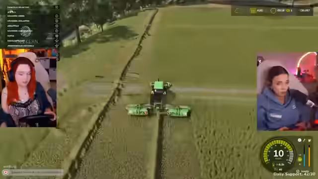 02:39:35Die Streamerin und Juni arbeiten zusammen auf dem Feld und überlegen, wie sie es am besten aufteilen. Sie fahren mit ihren Ballenpressmaschinen los und achten darauf, dass sie die Geräte richtig einstellen. Die Streamerin fährt 53 km/h und ist begeistert. Es wird darüber gesprochen, dass der Ballen nicht immer richtig abgelegt wird und man aufpassen muss. Juni gibt Tipps, wie man das Ablegen verbessert. Die Streamerin vermutet, dass der Auftrag so viel Geld bringt, weil es so mühsam ist mit dem Ablegen. Es wird festgestellt, dass man mit der richtigen Technik viel effektiver wäre. Die Streamerin fragt sich, was man bei den Farming Simulator Meisterschaften machen muss. Es wird erklärt, dass es unterschiedliche Kategorien gibt, wie Ernte oder Ballenpressen.