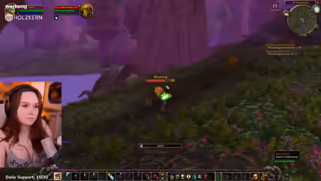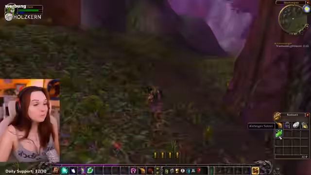 03:45:04Der Streamer entscheidet sich für den Kauf eines neuen Stabes, der wie ein Krückstock aussieht, und plant, ihn auszurüsten. Gleichzeitig erkundet er die Umgebung eines Baumes, diskutiert Quest-Positionen und erwähnt eine Priesterlehrerin. Es folgt eine Unterhaltung über die Schwierigkeit, allein zu spielen, wobei betont wird, dass gemeinsame Events wie das bevorstehende WoW-Twitch-Event motivierend wirken. Der Chat gibt Tipps zur Navigation, während der Streamer Fähigkeiten wie 'Mal der Wildnis' testet und Buffs auf sich selbst anwendet.