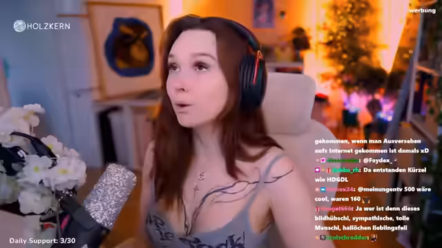 00:22:15Eine Diskussion über Beleuchtung im eigenen Zuhause entsteht. Der Streamer stellt klar, dass sie noch nie eine Deckenlampe aufgehängt hat und ausschließlich indirektes Licht nutzt. Sie kritisiert Deckenlampen als ungemütlich und erklärt ihr System mit mehreren Lichtquellen wie LED-Streifen und Stehlampen. Es wird über die unterschiedlichen Vorlieben im Chat debattiert und die Präferenz für gedimmtes Ambiente hervorgehoben.