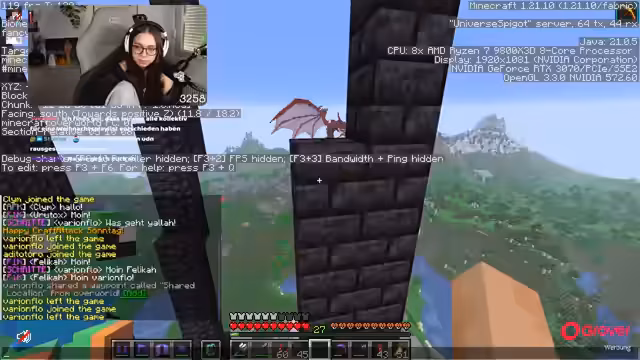 05:30:07Der Fokus liegt auf den aktuellen Bauprojekten in Minecraft. Der Streamer arbeitet an einer riesigen Struktur, die anscheinend extrem aufwendig ist und viel Konzentration erfordert. Es werden technische Details ausgetauscht, wie z.B. das Platzieren von Blöcken, um maximale Bauhöhe zu erreichen. Eine zusätzliche Baustelle für eine Möwe wird ebenfalls gezeigt und besprochen.