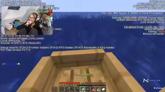 07:09:42Nach der erfolgreichen Farmung von Eisen und Diamanten ist das neue Hauptziel das Finden eines Dorfes oder weiterer Schätze. Der Fokus liegt speziell auf der Beschaffung von Gold, um eine vollständige Goldrüstung herstellen zu können. Die Erkundung per Boot wird als strategisch wichtig angesehen, um schneller neue Gebiete zu erreichen. Der Streamer ist jedoch ungeduldig und sucht aktiv nach einer schnellen Lösung, während der Chat aktiv bei der Suche nach Ressourcen und im Navigieren hilft.