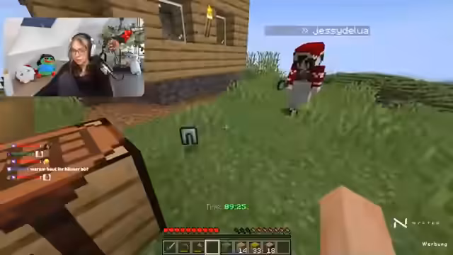 05:06:40Jessi versucht, eine Verbindung zu ihrem Instagram-Konto herzustellen, um eine Frage zu beantworten, während sie bereits mit Ausrüstung wie Eisen-Leggings und Brot ausgestattet ist. Beide Streamer planen, in Minecraft Diamond zu finden und beginnen mit dem Sammeln von Ressourcen wie Holz und dem Erstellen von Werkzeugen. Der Fokus liegt auf dem Aufbau einer Basis und der Vorbereitung für die bevorstehende Aktion.