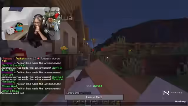 05:11:50Jessi und ihr Partner führen eine Pack-Opening-Session durch und äußern ihre Enttäuschung über das Ergebnis. Anschließend widmen sie sich der Minecraft-Session, indem sie Ressourcen wie Flint sammeln und einen Fletcher-Tisch bauen. Sie erkunden die Welt, um ein Dorf zu finden, und erstellen Rüstung aus Eisen. Dabei kommt es zu witzigen Missverständnissen und Aktionen, wie dem Belästigen eines Eisengolems.