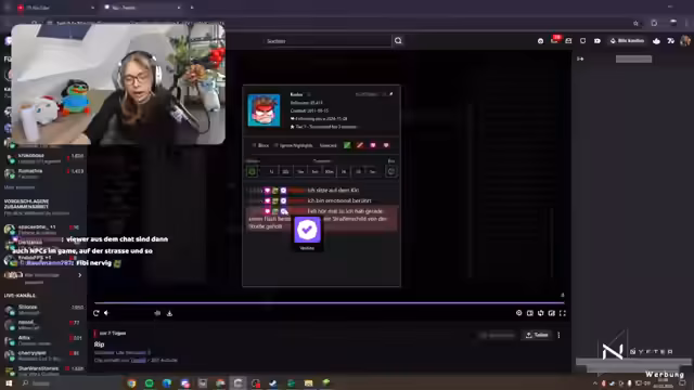 06:07:25Jessi teilt Pläne für ihre Reise nach Rotterdam, die aber noch ungewiss sind. Sie erzählt von einer schrecklichen Zugfahrt in der Vergangenheit. Anschließend schlägt sie ein neues Content-Format vor: Sie würde einen Stream von Jessi anschauen und auf die besten Kommentare reagieren. Auch ein mögliches Chat-Tausch-Format mit einem anderen Streamer wird ins Auge gefasst.
