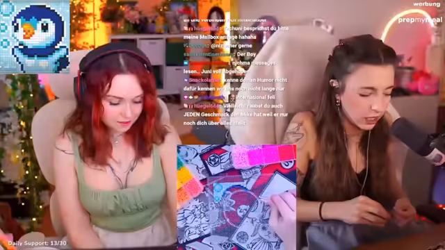 01:15:53Feli spricht über Twitch-Bugs, bei denen fälschlicherweise Subs sechs Monate im Voraus angezeigt werden. Sie scherzt darüber, dass sie eine Taste habe, um den Hype-Train zu aktivieren, um Subs zu locken. Juni zeigt ein Cringe-Puzzle, das sie in einem Second-Hand-Shop gekauft hat. Die beiden beginnen mit dem Bügeln und ermutigen den Chat, Fragen zu stellen. Sie vergleichen die Zurückhaltung des Chats mit der regen Beteiligung bei Dr. Sommer-Formaten, wo es viele Fragen zu Sex gibt. Feli scherzt, dass der Chat nur bei solchen Themen aufmerksam ist. Juni wartet auf Essen von Timo und schildert, dass sie ohne Essen nicht arbeiten kann. Feli hingegen hat nebenbei gefrühstückt, während sie sich geschminkt hat. Sie bedanken sich für den Geister-Hype-Train und sprechen darüber, dass sie beim letzten Mal lange gebraucht haben, um die Technik einzurichten.