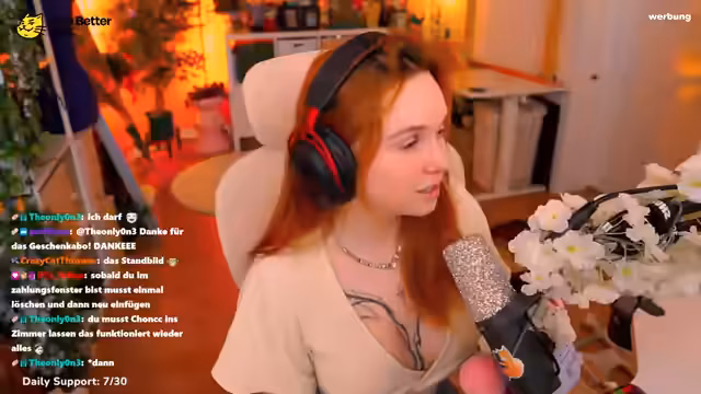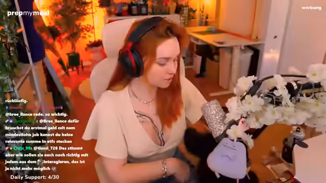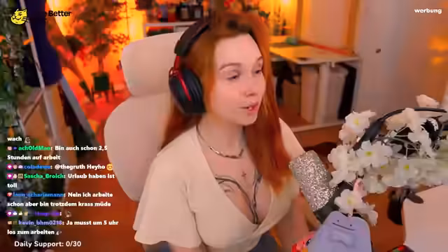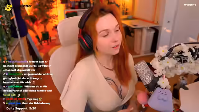 00:38:44Die Streamerin wechselt zu einem persönlichen und ernsten Thema. Sie spricht über eine in der Vergangenheit traumatische Beziehung, die ihr Selbstwertgefühl nachhaltig beschädigt hat. Sie berichtet von wiederkehrenden negativen Gedanken und Angstzuständen, die dazu führen, dass sie sich in Beziehungen nur sehr langsam öffnen kann und äußert ihre Sorge, die Therapie, die sie benötigt, könne nicht vermittelt werden.