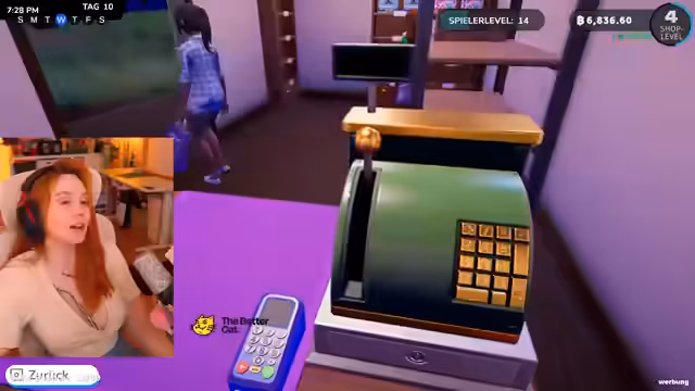 05:05:30Nach dem Speichern im Burgerladen-Spiel wechselt der Streamer zu Bookshop-Simulator, inspiriert von einem Discord-Post. Parallel dazu diskutiert er seine Vorliebe für Ketchup-Pommes und eine angeblich abgenommene Katze, von der der Streamer annimmt, sie schaue ihm neidisch beim Essen zu. Er erwähnt auch die Kritik an Streamern, die ihren Stream beenden, sobald bestimmte Ziele wie Abonnements erreicht sind, und bezeichnet dies als traurige Vorgehensweise. Am Ende des Abschnitts wird eine neue Mitarbeiterin für den Buchhandel eingestellt, die für das Einräumen zuständig ist.