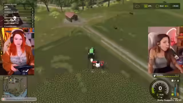 03:20:00Nachdem die Technikprozeduren unterbrochen wurden, kehren die Streamer zum Thema Farming Simulator zurück. Gemeinsam planen sie, Sojabohnen anzupflanzen und erleben dabei einige kleine Missgeschicke mit der Bedienung der landwirtschaftlichen Geräte. Der Chat gibt dabei Hilfestellungen und wird in das Geschehen einbezogen.